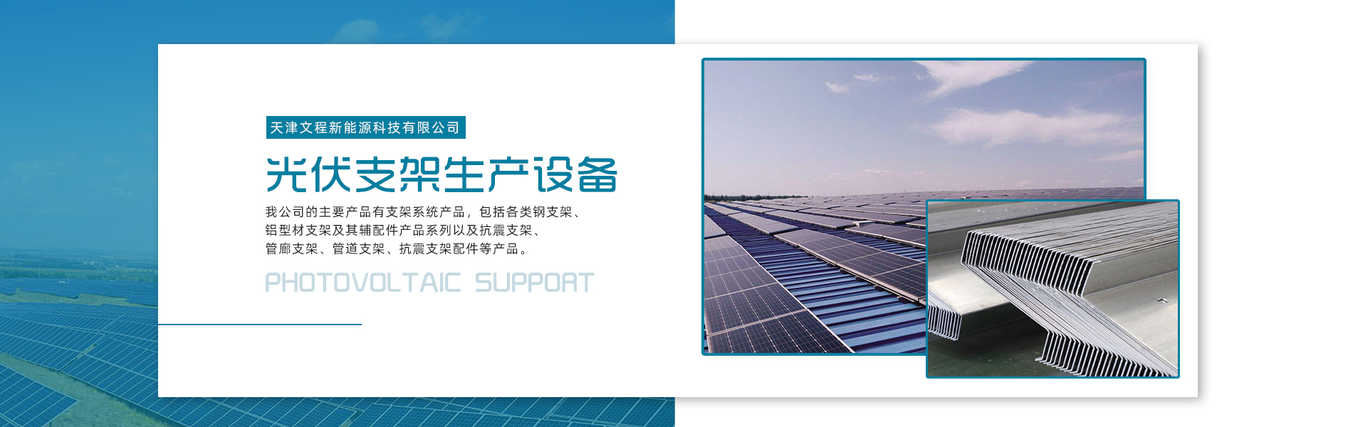 天津文程新能源科技有限公司成立于2021年,是專注于集中式、分布式、漁光互補(bǔ)和農(nóng)光互補(bǔ)等清潔能源發(fā)電的綜合性企業(yè) 公司是集設(shè)計(jì)、研發(fā)、生產(chǎn)、制造為一體的綜合型企業(yè)。公司占地面積20000平方米,注冊資金5000萬元整。公司坐落于華北鋼鐵重鎮(zhèn)--大邱莊,距天津市區(qū)50公里、鄰104和205國道及京滬高速,交通十分便捷。 本公司擁有三個生產(chǎn)車間,其中兩個冷彎型鋼車間,一個鋅鋁鎂型鋼車間,擁有自動冷彎成型機(jī)10條,自動數(shù)控沖孔機(jī)10條以及焊接加工等設(shè)備。主要生產(chǎn)產(chǎn)品有:太陽能光伏支架、各種規(guī)格的C/Z/U型鋼、抗震支架、管廊支架及整套配件等。